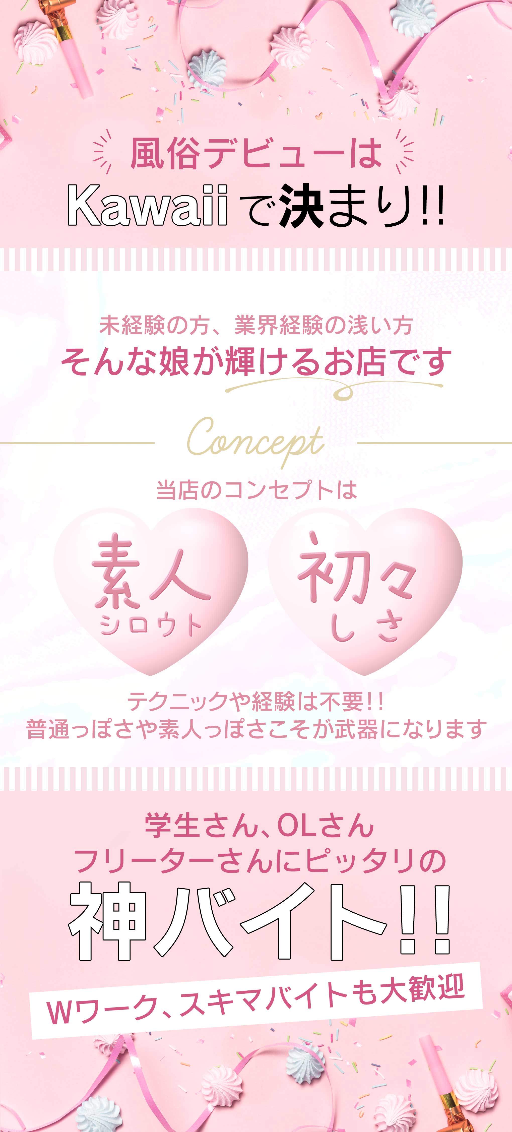 ■完全自由出勤 ■週1日、月数回の勤務でOK ■1日3時間以上からOK ●完全日払い(明細を発行の明朗会計) ●ノルマや罰金一切なし ●完全個室待機 ●安心・安全の衛生管理 ●提携医療機関あり ●生理休暇あり ●制服無料貸与 ●アリバイ対策(接客前モニター確認あり) ●掛け持ちOK(他店との違いを確かめて!) ●入店・退店いつでもOK(強要や引止め一切なし) ●寮完備 ●送迎あり ◆未経験大歓迎 ◆学生(専門、大学)、昼職との掛け持ち、すきまバイト大歓迎 |