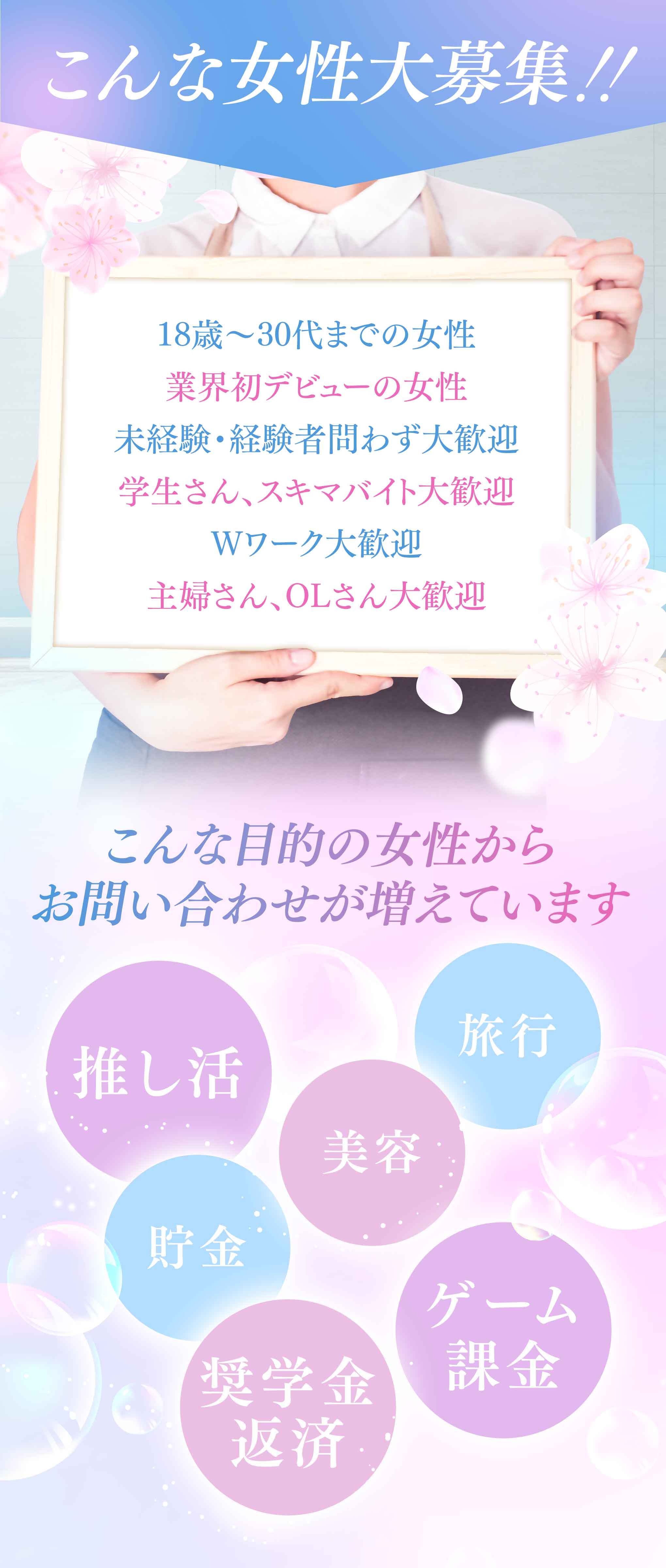 | 18歳以上40歳までの女性を大募集! ※18歳未満(高校生を含む)の応募はお断りします。 |