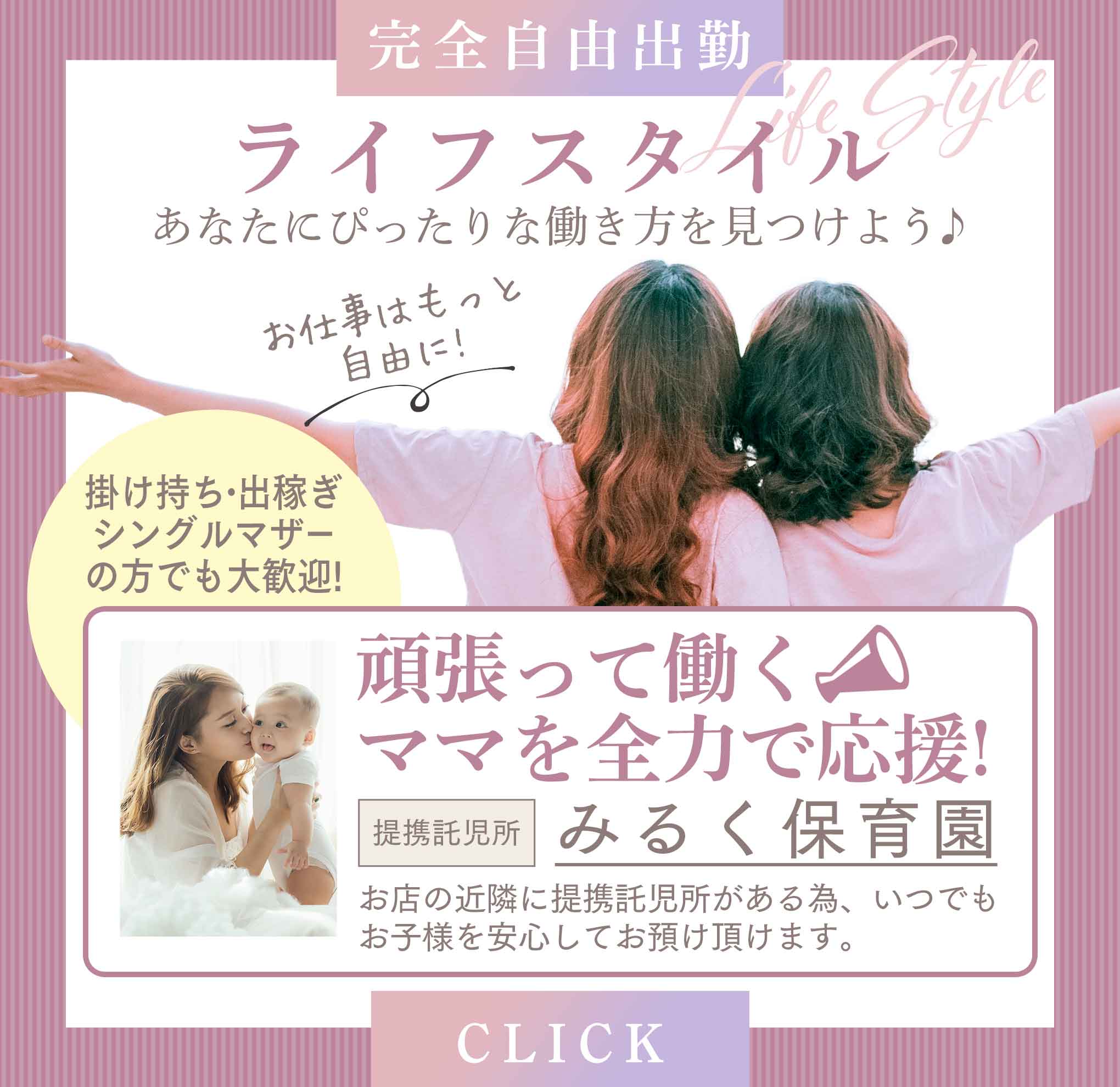 体験入店の際の託児所代金を一部負担致します。