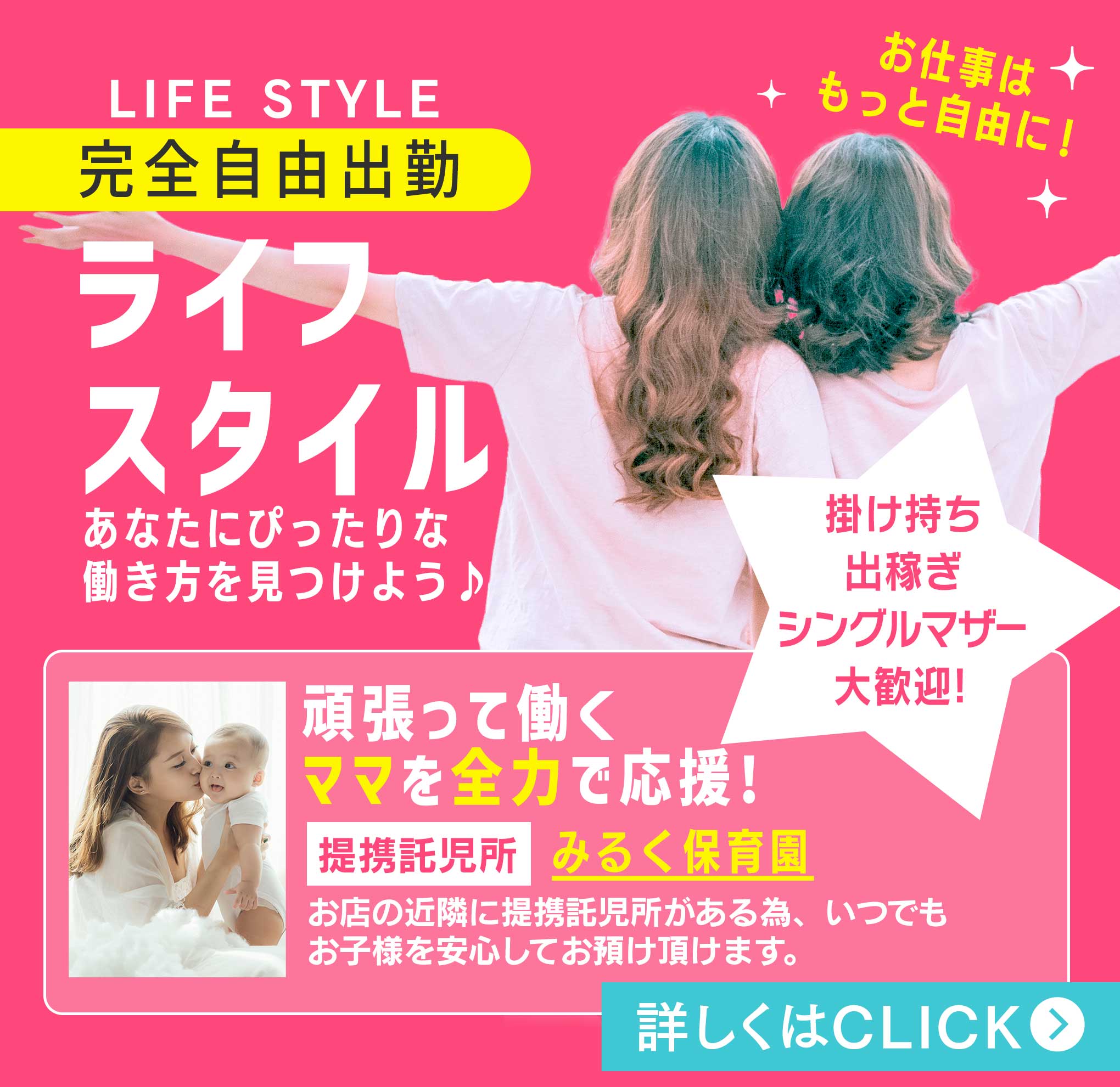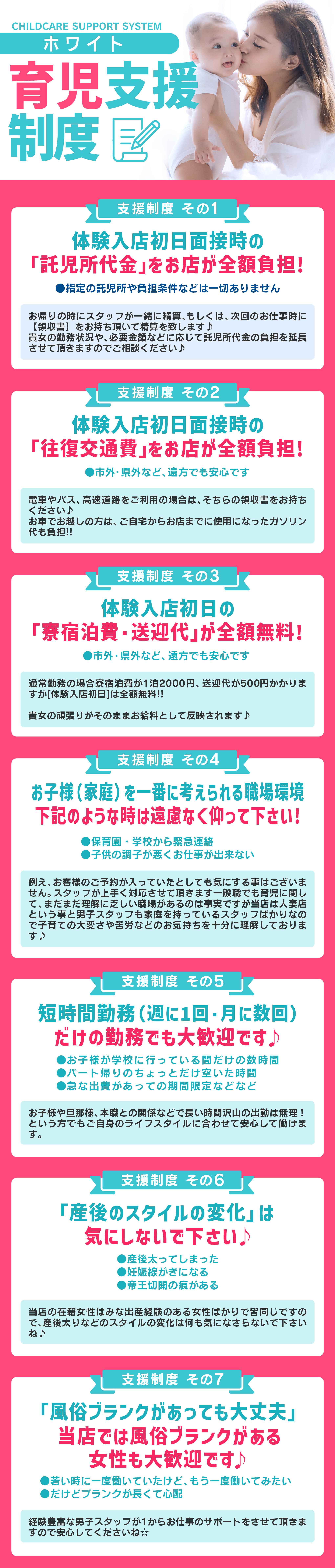 体験入店の際の託児所代金を一部負担致します。