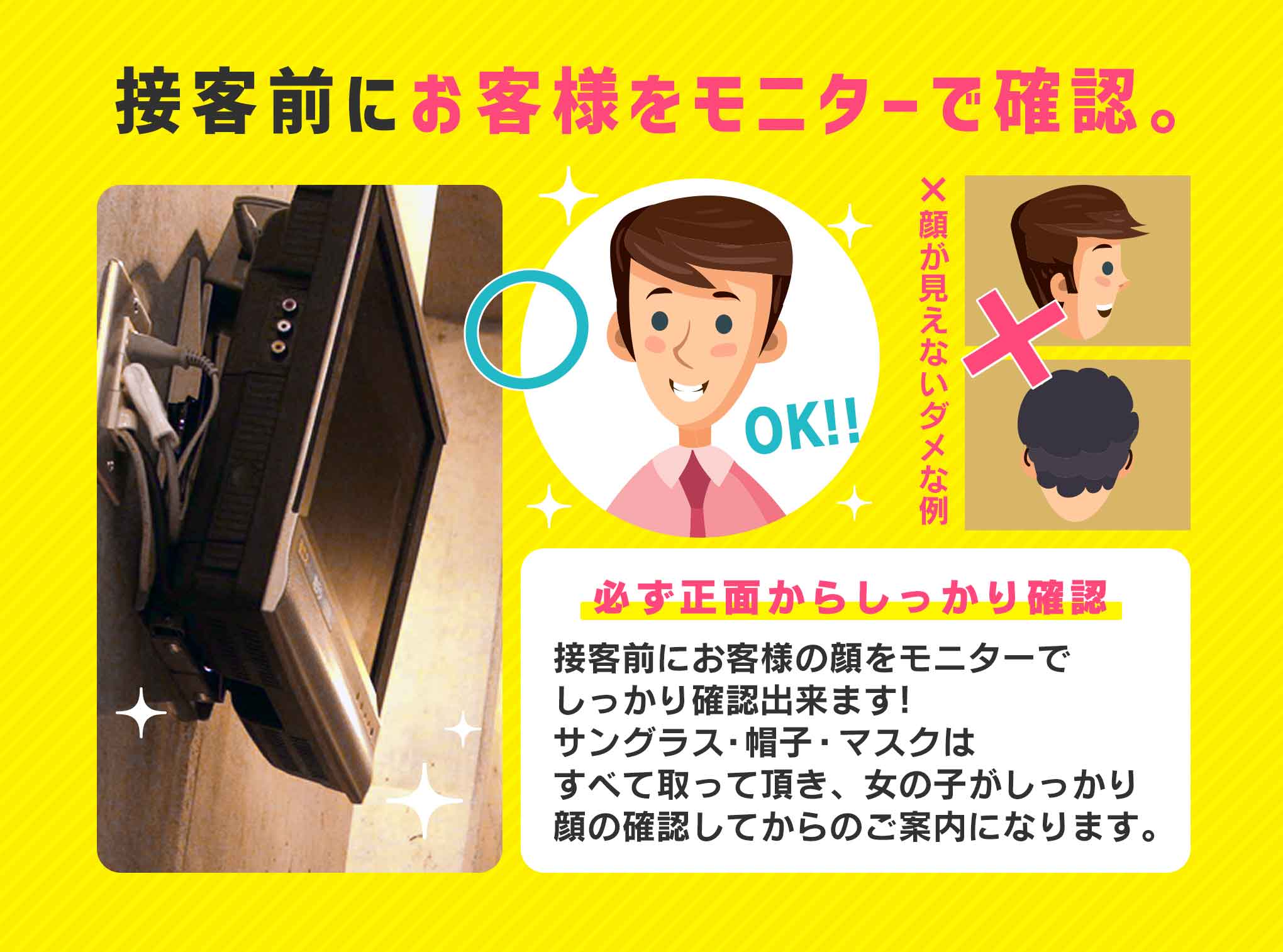 お客様の確認は案内前にモニター確認できます!