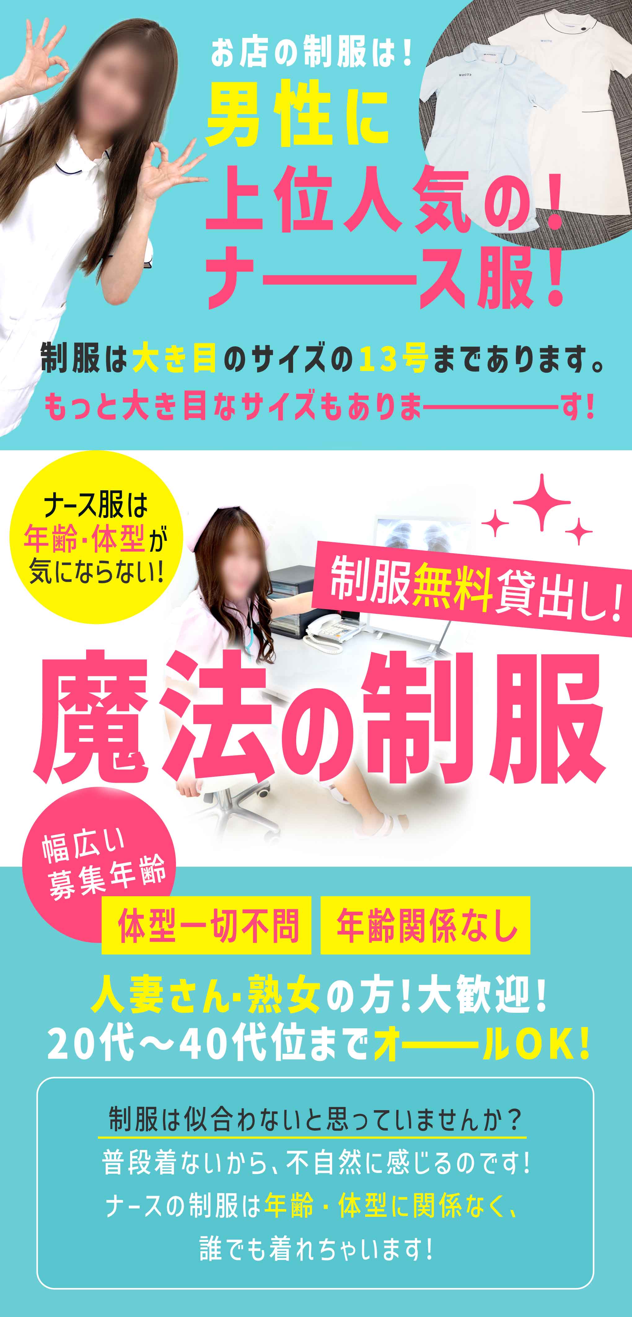 20代~40代位の方を大募集です!ナース服が制服の年齢層が幅広いお店です!人妻さん、熟女さんも大募集!!